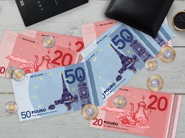 This nifty little number is here so you can say “see EU later, euro” and be rid of that Great British pounding headache. Ready for use throughout the transition period, the pouro will be accepted throughout the United Kingdom and Europe.. That’s right, folks, one currency to exchange and carry across 27 countries in Europe and four countries in the UK.